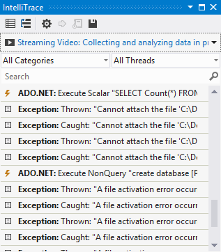 I was trouble shooting the ability to create a localdb database using Entity Framework and Visual Studio when I found that I had waisted over an hour because I didn’t understand the fundamentals of IntelliTrace.