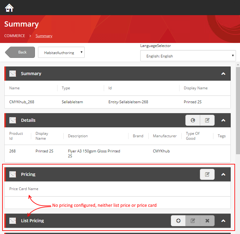 We setup a normal sellable-item with the bare minimum required. Notice there is no pricing configured for the sellable-item, there’s no list price configured and no sell price configured (price card).